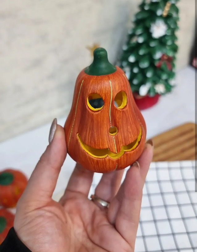 این جاشمعی زیبا در داخلش شمع وارمر قرار میگیره و نور از دهان و چشم های کدو بیرون میاد. این محصول بعنوان دکوری زیبا در منزلتان هم استفاده میشه و زیبایی چشمگیری داره🎃😍
