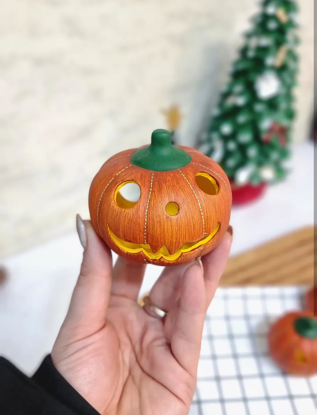 این جاشمعی زیبا در داخلش شمع وارمر قرار میگیره و نور از دهان و چشم های کدو بیرون میاد. این محصول بعنوان دکوری زیبا در منزلتان هم استفاده میشه و زیبایی چشمگیری داره🎃😍