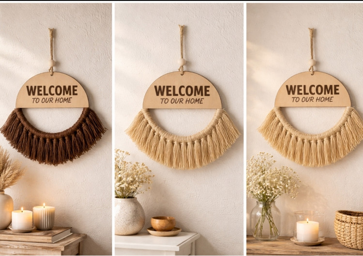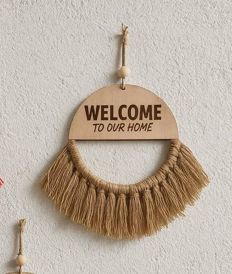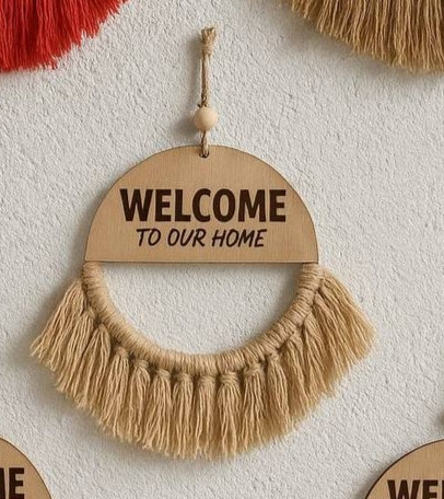 نوشتهی Welcome To Our Home روی پلاک چوبی، این آویز را به گزینهای جذاب برای درب ورودی یا هدیهای خاص برای خانهنو تبدیل کرده است.