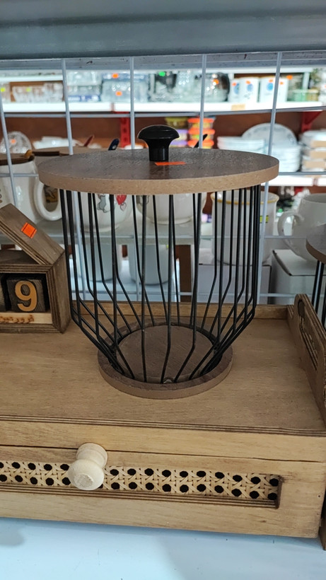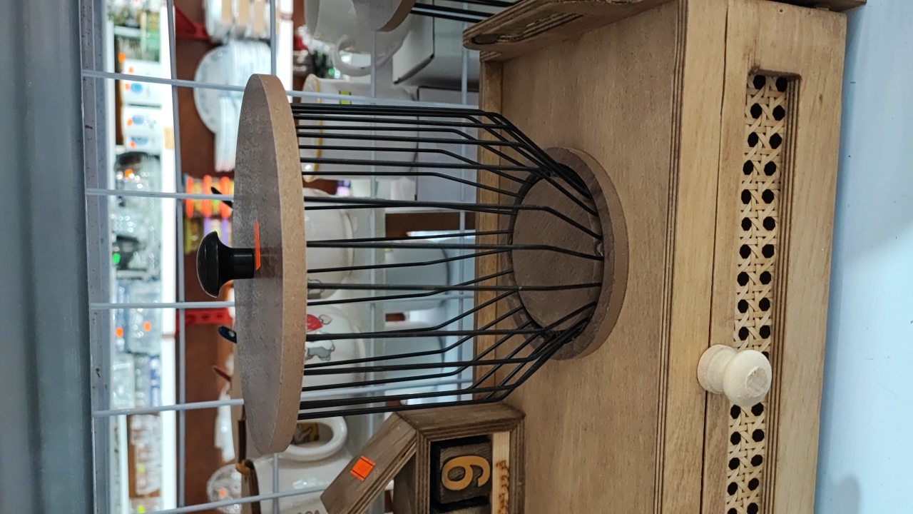 سبد گرد فلزی درب چوبی