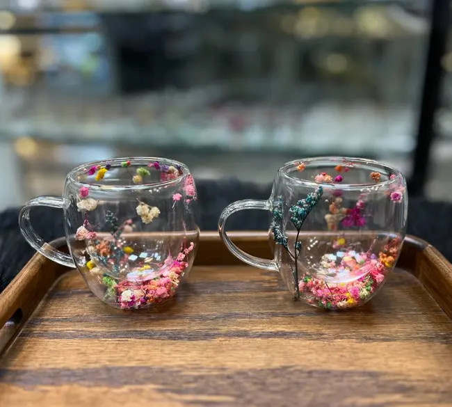 ماگ پیرکس دوجداره گلدار